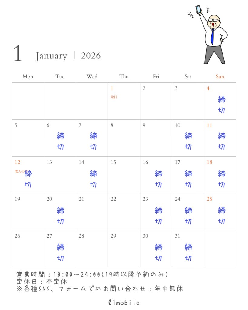 【01mobile|2026年1月の営業日について】