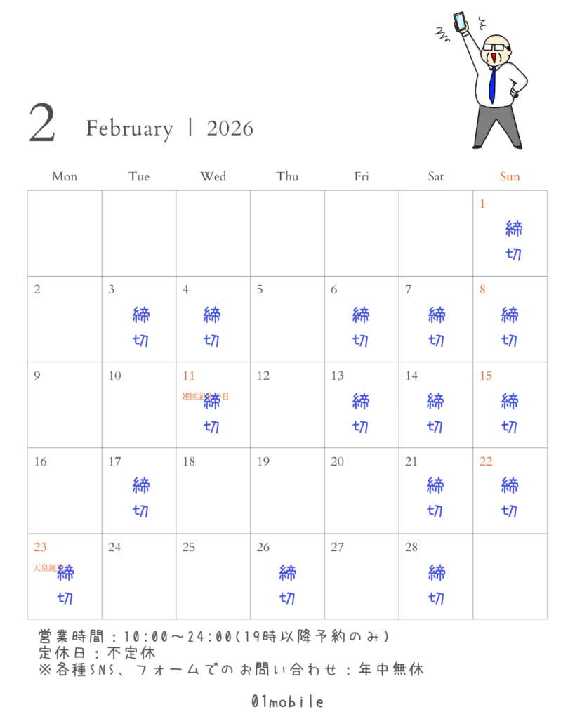 【01mobile|2026年2月の営業日について】