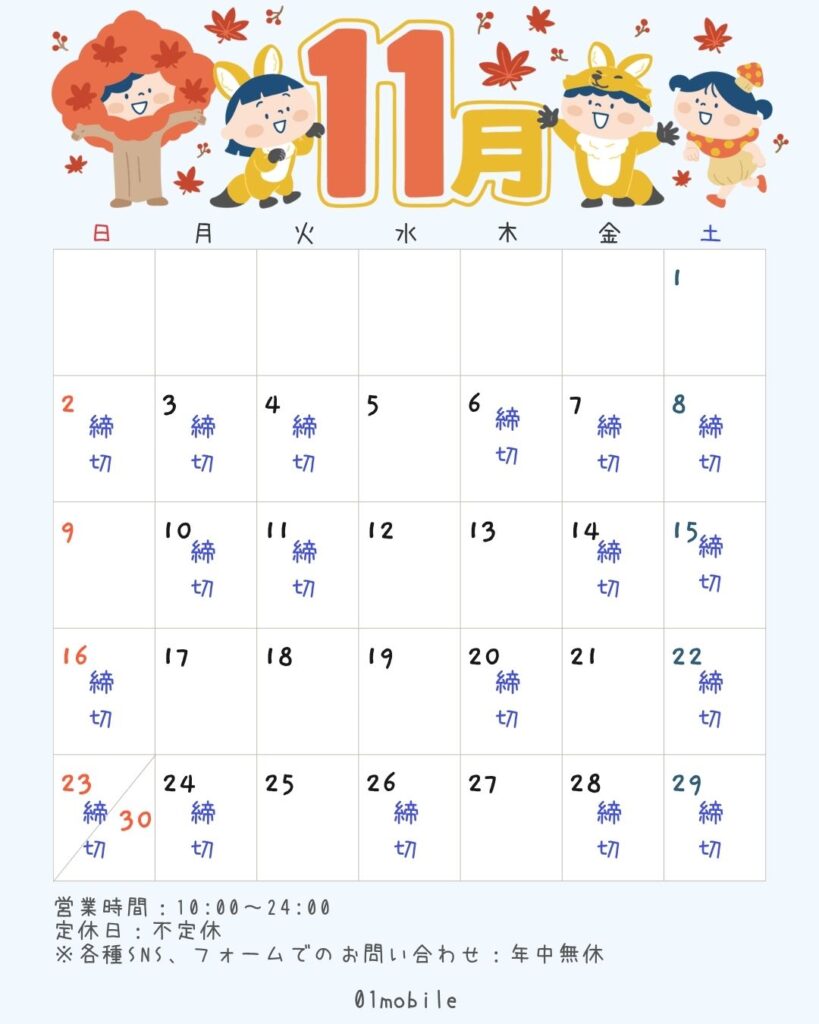【01mobile|2025年11月の営業日について】